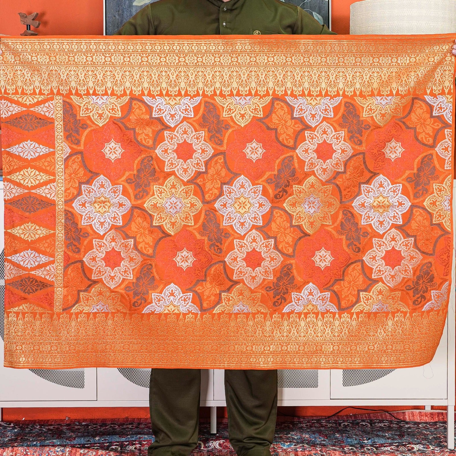 • Tenunan Tangan Asli – Setiap benang ditenun secara individu menggunakan tenunan kayu tradisional, memastikan keunikan setiap potongan.